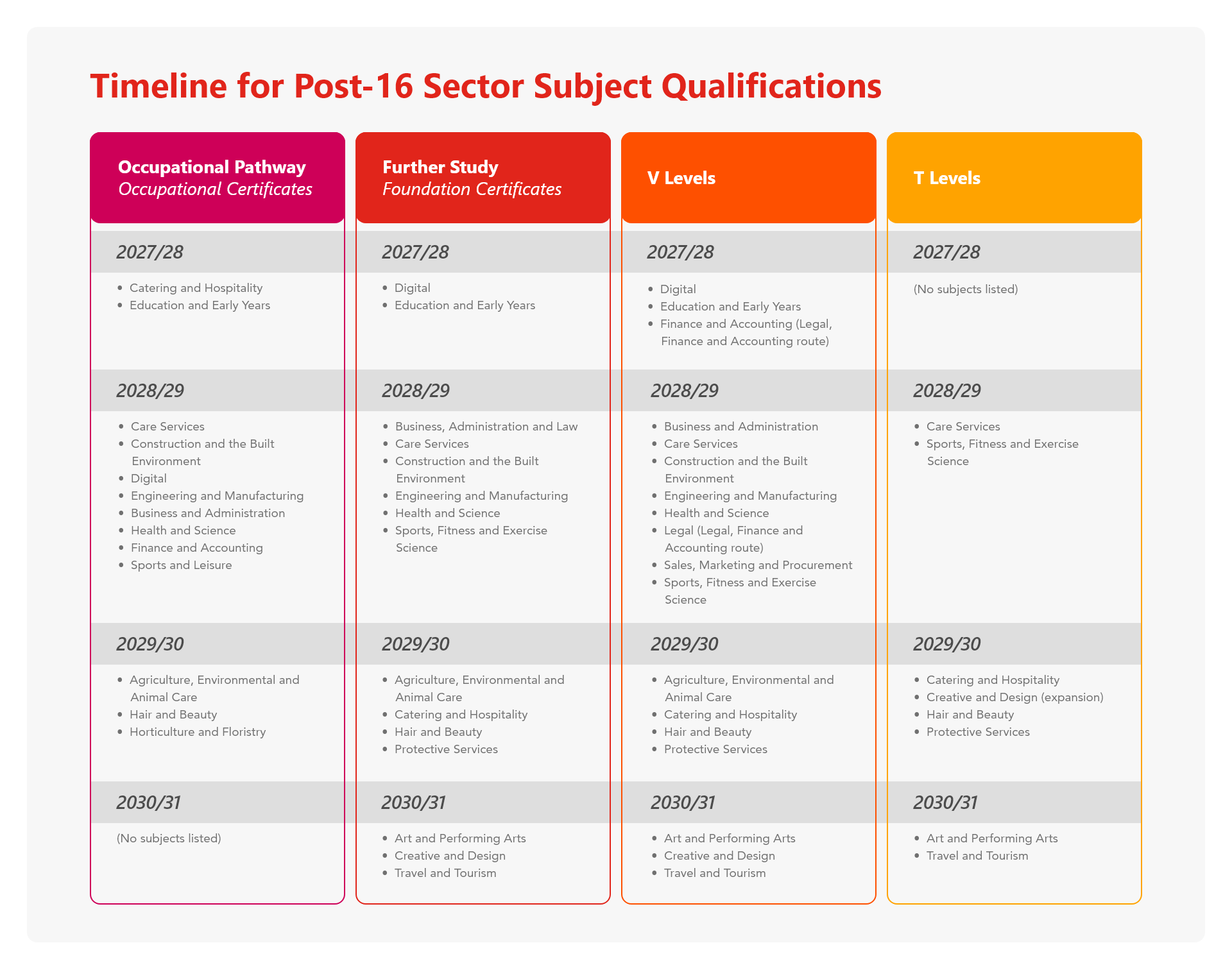 First teach is September 2027, in Digital; Education & Early Years; Finance & Accounting.